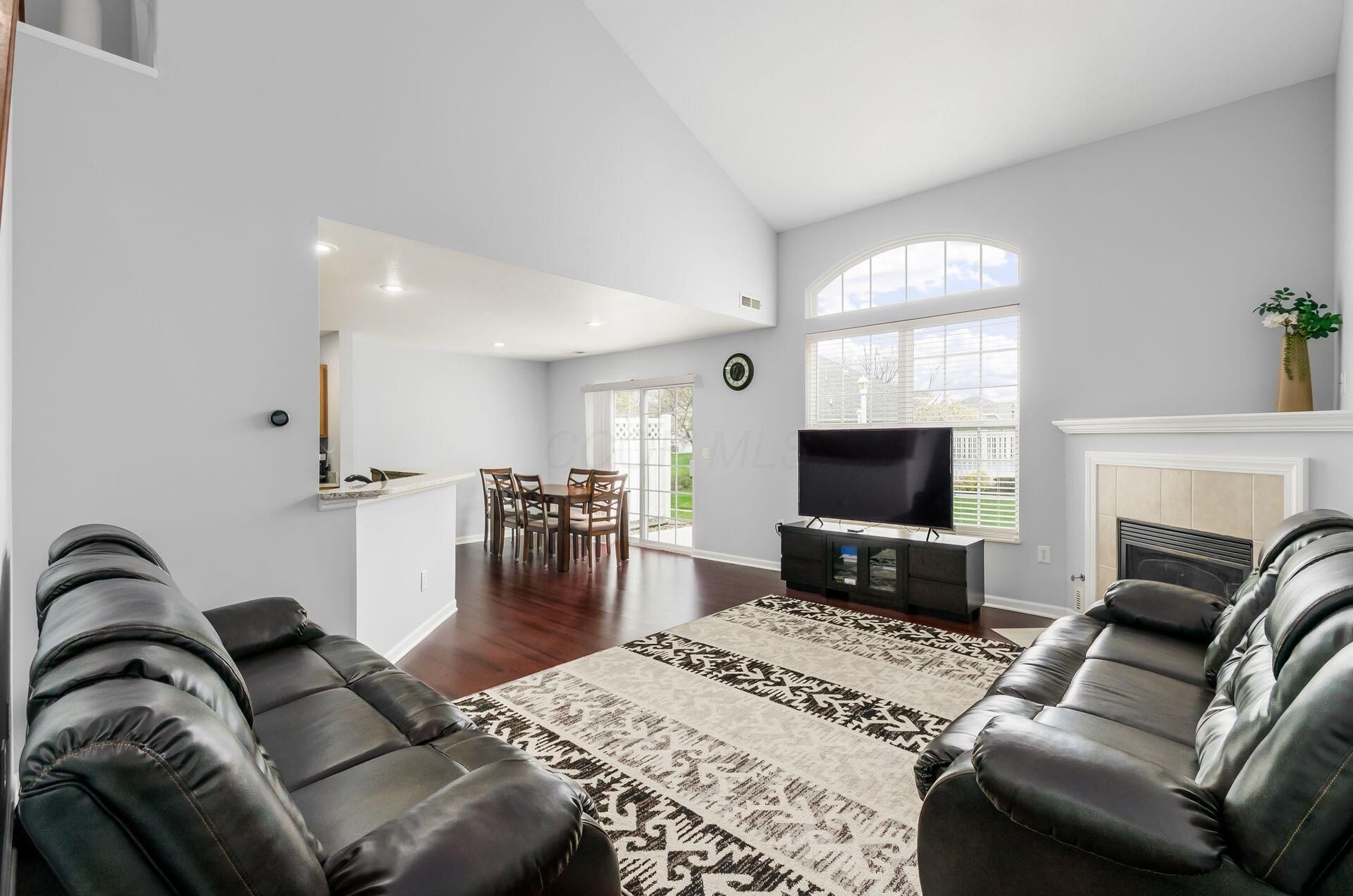 Welcome home to this three-bedroom, 2.5-bath property featuring a first-floor primary bedroom and convenient first-floor laundry. Gas fire place to enjoy on winter evening, and a pool just steps away for the summer months. Enjoy the comfort of large bedrooms with large closets and plenty of storage space, plus stainless steel appliances and a heated garage. With only one shared wall, you'll appreciate added privacy, all within the Olentangy Schools district. The HOA includes water, trash, sewer, and internet, along with access to the community pool and 24 hour gym. Newer dishwasher, and microwave