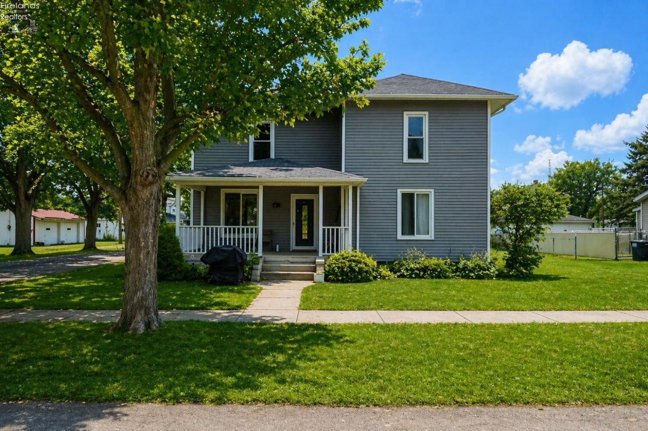 This spacious home is situated on a corner lot in a quaint small town offers breathtaking views of the surrounding countryside. The property boast numerous desirable features, including four spacious bedrooms, one which is conveniently located on the main level. Two full bathrooms are available, one on each floor, with the second floor bathroom featuring a soaking tub, separate standing shower and a expansive vanity. A large covered porch with vinyl railing provides the perfect spot to enjoy the picturesque views during sunrise to sunset. Recent updates to the property include a new furnace (year old), new sideways, new stone driveway, gutters and downspouts, vinyl siding and some newer windows all completed within the last decade. Laundry is located on main floor with all kitchen appliances to remain. Basement was waterproofed with two sump-pumps from everdry. This home is ideal for a large family, offering an open spacious feel. A shed and fenced in yard complete this ex large beautiful home.