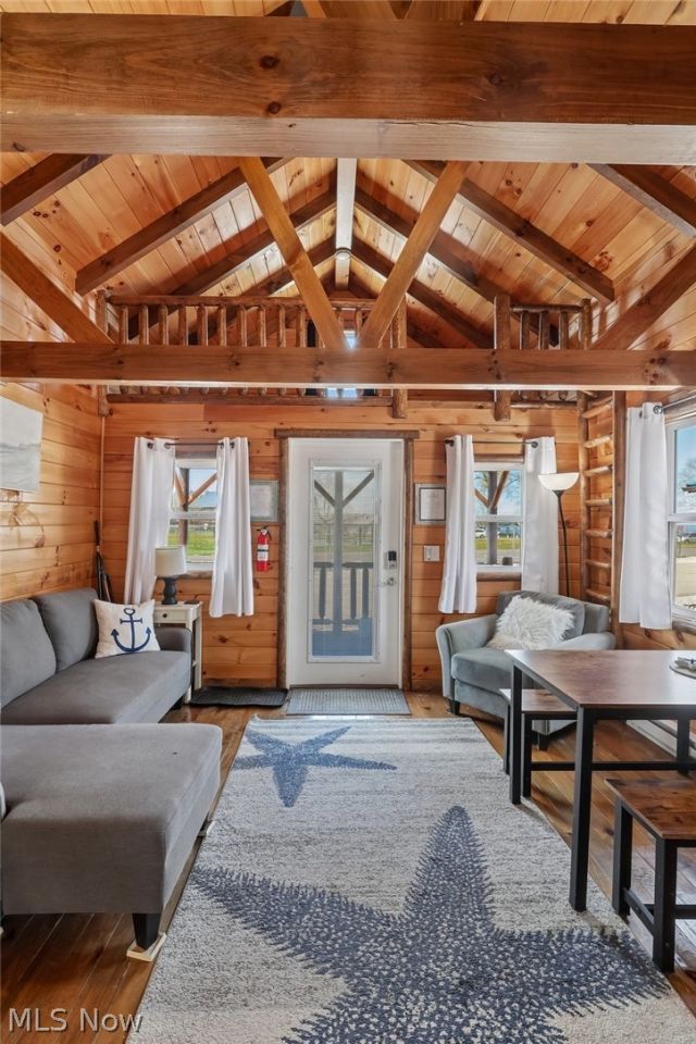 Welcome to Eagle Nest Cabin, a charming log cabin cottage nestled along the lake and perfectly situated beside Saybrook township park, with just a short drive to the vibrant and fun attractions of Geneva-on-the-Lake and many local wineries. This inviting retreat offers the best of both worlds?peaceful lakeside living and convenient access to dining, entertainment, and recreation. Currently operating as a successful Airbnb, the cabin is equally enjoyed by its owners as a personal getaway when not in use?making it a wonderful blend of investment opportunity and private retreat. Inside, you'll find a warm, thoughtfully designed space that comfortably accommodates up to seven guests. The layout includes a first-floor primary bedroom for easy living, an additional upstairs bedroom, a cozy loft suitable for a twin bed, and a pullout sofa for extra guests. The home is tastefully decorated, creating a welcoming and relaxing atmosphere throughout. The community enhances the experience with shared steps leading down to the main attraction lake Erie! Charming gazebos, firepit, grills and picnic areas are perfect for gathering with friends and family or simply enjoying the scenic surroundings. For those seeking a seamless transition, this property can be offered as a turnkey opportunity, with furnishings and the shed available for purchase at an additional cost. Whether you're looking for an income-producing property, a personal escape, or both, Eagle Nest Cabin is a place to truly enjoy lake life. Come see for yourself?you may never want to leave.