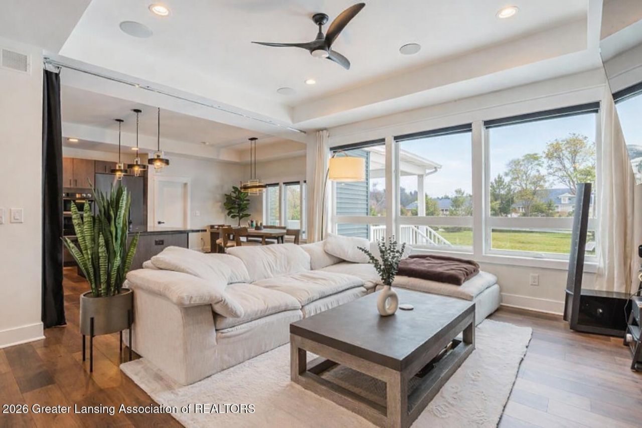 Located in Hasletts highly sought-after Sierra Ridge Subdivision, this custom high-end smart home is a stunning lookout ranch offering over 2,000 square feet on the main floor and 1,400 (+-) square feet of finished space below. The interior features a striking foyer with a wrought iron staircase leading to a great room with floor-to-ceiling windows, and tray ceilings. $30,000 in theater upgrades including specialized sound curtains and built-in speakers (that could be negotiated at a separate price). The gourmet kitchen is a chefs dream with thick porcelain countertops, a 6-burner gas range, a 4-door built-in refrigerator, and a walk-in pantry. Relaxation awaits in the primary suite, which offers private deck access and a resort-style bath with heated tile floors, a floating tub, and a premium bidet-style toilet. The main floor also hosts a luxury guest suite, a versatile study or third bedroom with its own heating zone, and a clever laundry room with direct access to the primary closet. The finished lower level includes a fourth bedroom ensuite and a large game room with ample storage, while the homes mechanicals feature three-zone heating and a reverse osmosis system. Complete with a three-car garage featuring electric vehicle charging and a covered porch perfect for viewing sunsets, this exceptional property is conveniently located near MSU, shopping, and highway access.